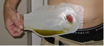 To sztuczne ujście jelita cienkiego lub grubego poza jamę brzuszną. Stomia jest na powierzchni skóry brzucha. Przez stomię kał odprowadzany jest do specjalnych worków, które są przyklejane na brzuch (sprzęt tzw. stomijny jest dość kosztowny i w chwili obecnej refundowany w 100 procentach przez Narodowy Fundusz Zdrowia, w ramach limitu).